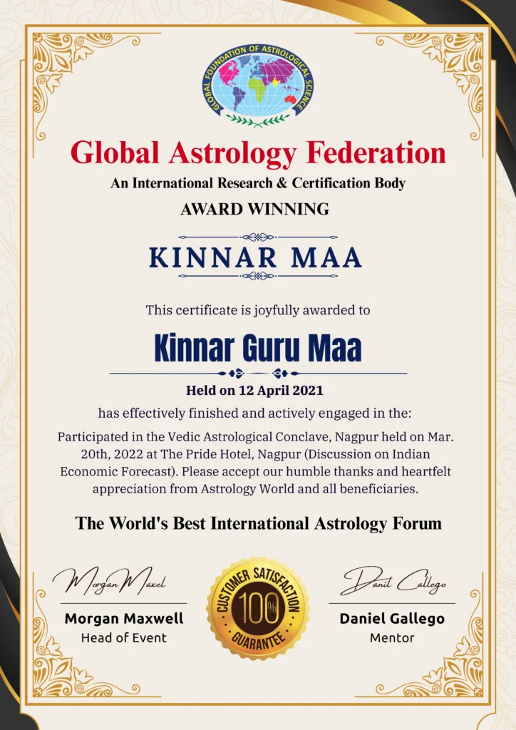 Kinnar Guru Maa is a renowned spiritual healer and astrologer, dedicated to bringing peace, happiness, and prosperity into the lives of her clients. With years of experience in astrology, mantra therapy, and spiritual guidance, she has helped countless individuals overcome personal, professional, and relationship challenges.